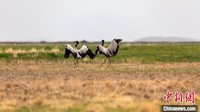 翩翩起舞的黑頸鶴。若爾蓋宣傳部供圖 攝