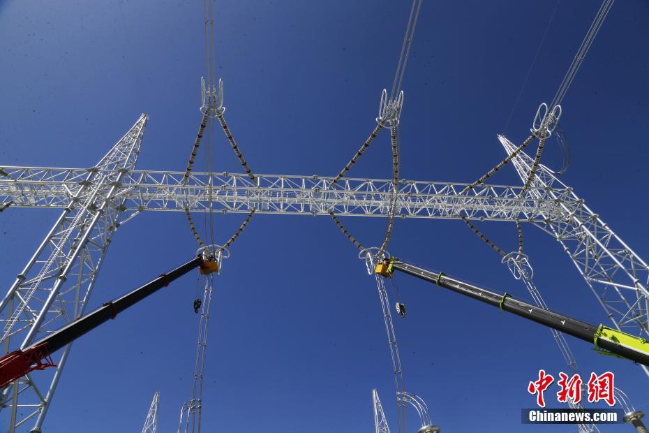 6月23日拍攝的青海省海南藏族自治州共和縣±800千伏特高壓青南換流站內的驗收引流線。中新社記者 馬銘言 攝