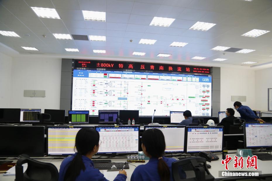 6月23日,在青海省海南藏族自治州共和縣±800千伏特高壓青南換流站,工作人員在主控室監控及操作。中新社記者 馬銘言 攝