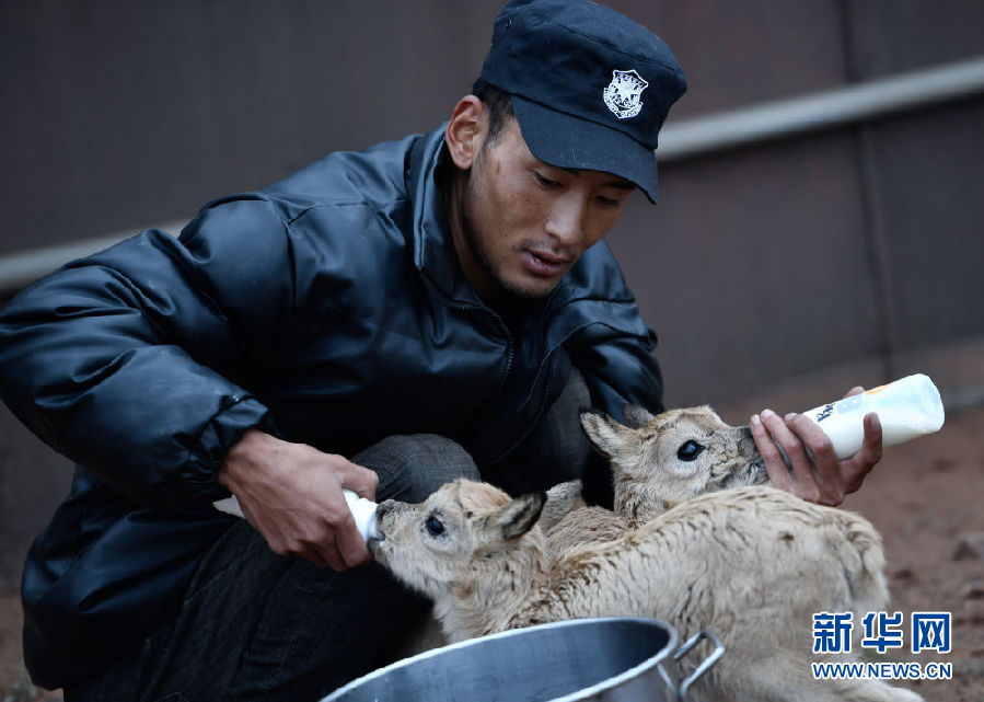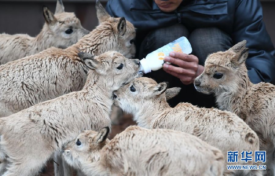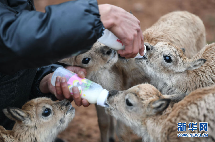 為讓11只藏羚羊幼仔盡快適應環境、健康成長,卓乃湖保護站安排專人,在特定區域對其進行喂養。記者在卓乃湖保護站看到,每日早、中、晚,巡山隊員才文多杰會按時給小藏羚羊喂奶,每只小藏羚羊都有自己的“專用”奶瓶。
