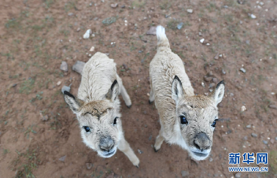 這是7月8日在三江源國家公園管理局長江源園區可可西里管理處卓乃湖保護站拍攝的兩只藏羚羊幼仔。新華社記者 張龍 攝