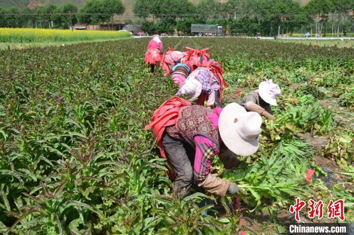 眼下正值青藏高原夏菜豐收的季節,行走在青海省海南州貴德縣新街回族鄉的田地里,時常有在菜地里忙碌的村民。