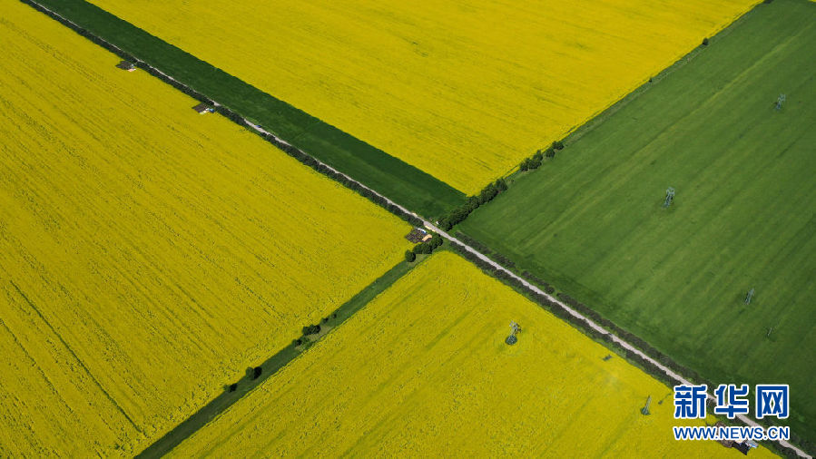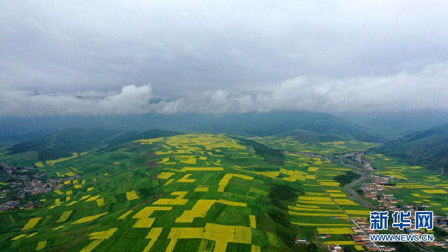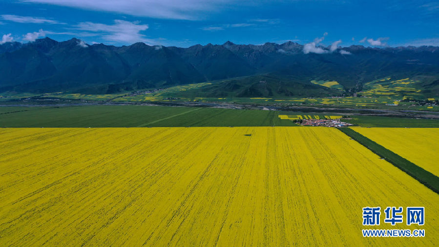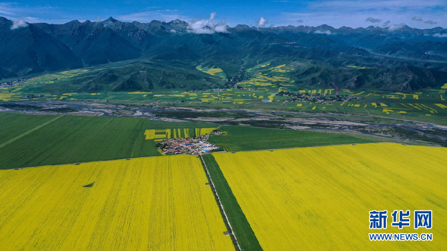 這是7月22日拍攝的門源回族自治縣的油菜花田(無人機照片)。新華社記者 張宏祥 攝