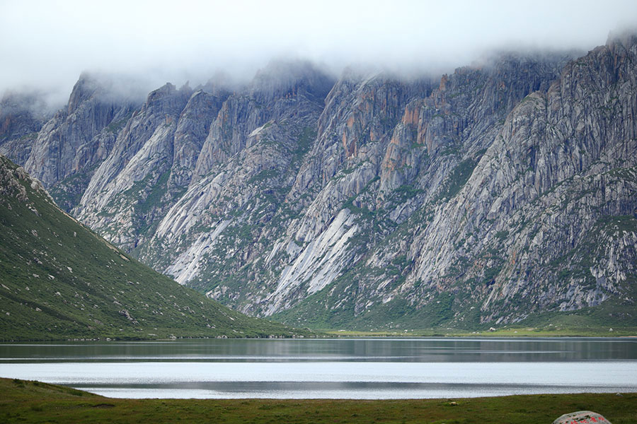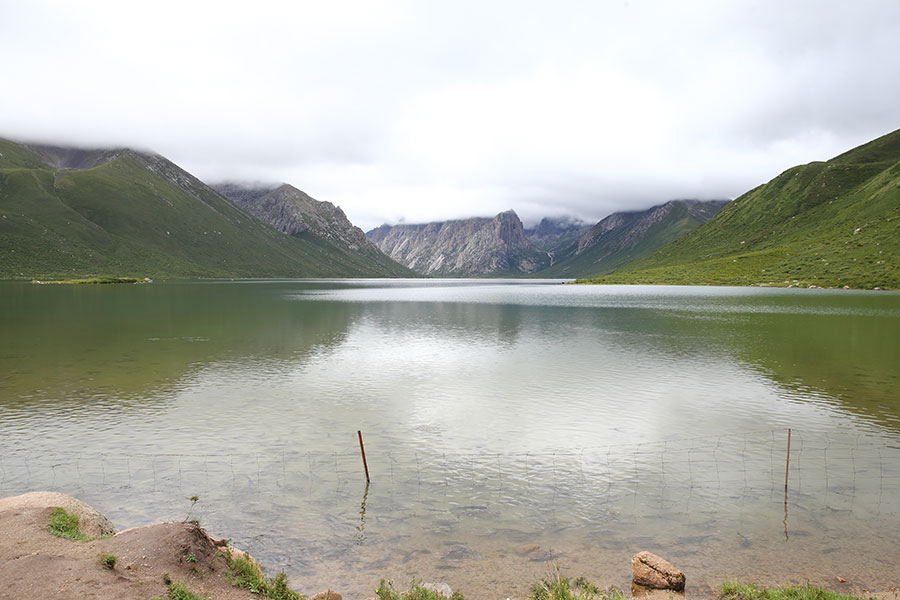 站在年保玉則的湖畔,湖面幽藍深邃像是一面鏡子,時間仿佛在這一刻都停止了,寧靜和心靜。望向遠處,山峰疊巒直插縹緲的白云中;看向身旁,五顏六色的小花鋪滿了湖岸,牦牛低頭飲著湖水,成群的裸鯉游走在湖邊,這是生命的動靜。
