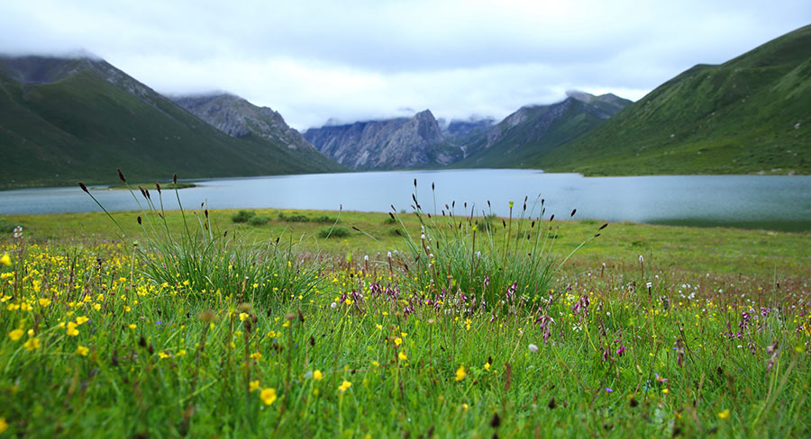 圖為年保玉則保護區內,五顏六色的小花鋪滿湖岸。劉歡 攝