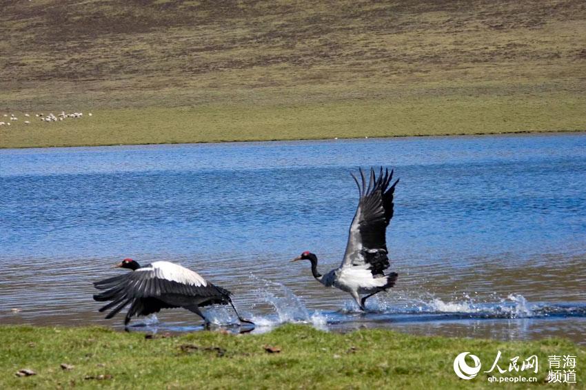 • 黑頸鶴成雙“起舞”祁連山