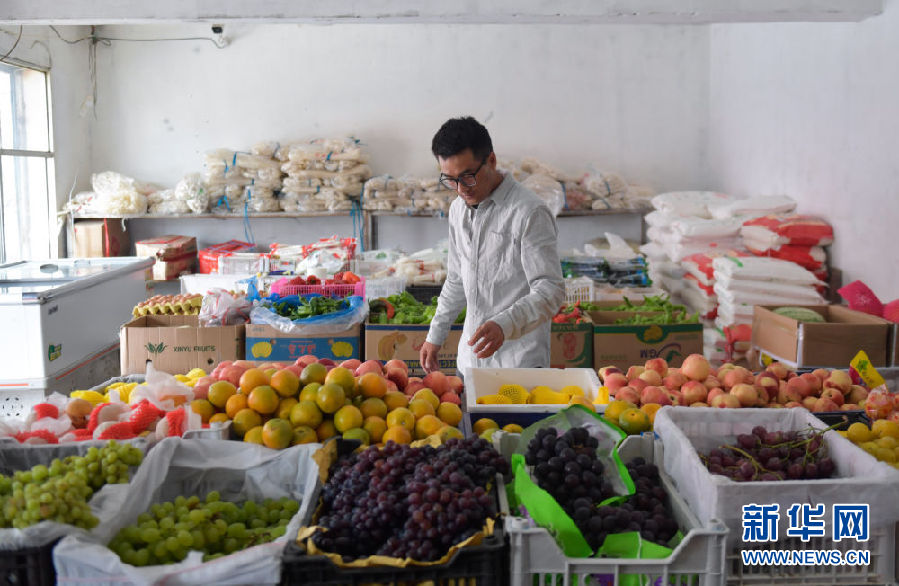 8月13日,尤拉太在返鄉前到興海縣一家水果店內購物。新華社記者 張龍 攝