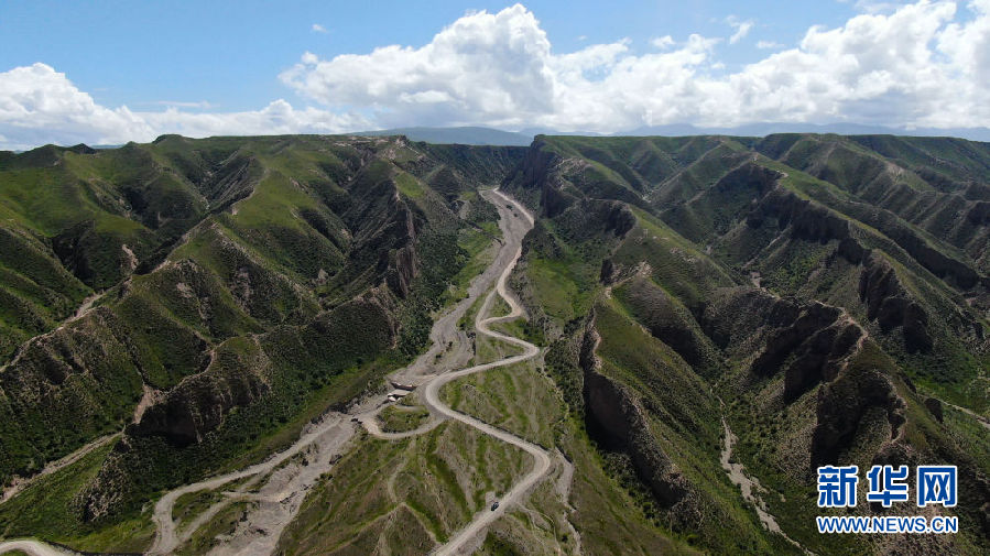 這是8月13日拍攝的進入夏塘村的道路(無人機照片)。新華社記者 張龍 攝