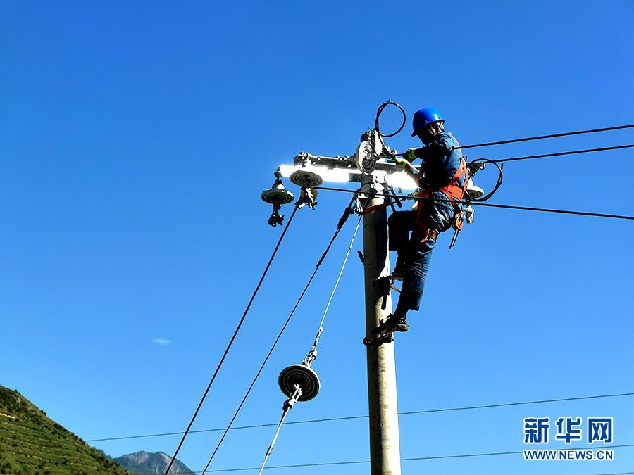 9月2日,電力工人正在搶修舟曲縣曲告納鎮(zhèn)的供電線路。新華網(wǎng)發(fā)(張靜 攝)