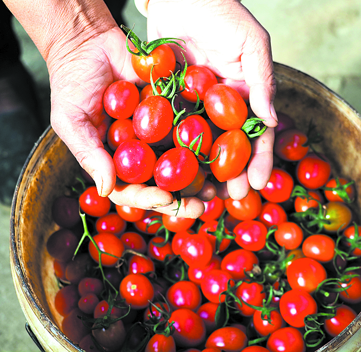 白瑪卓瑪采摘番茄。于譚陽 攝