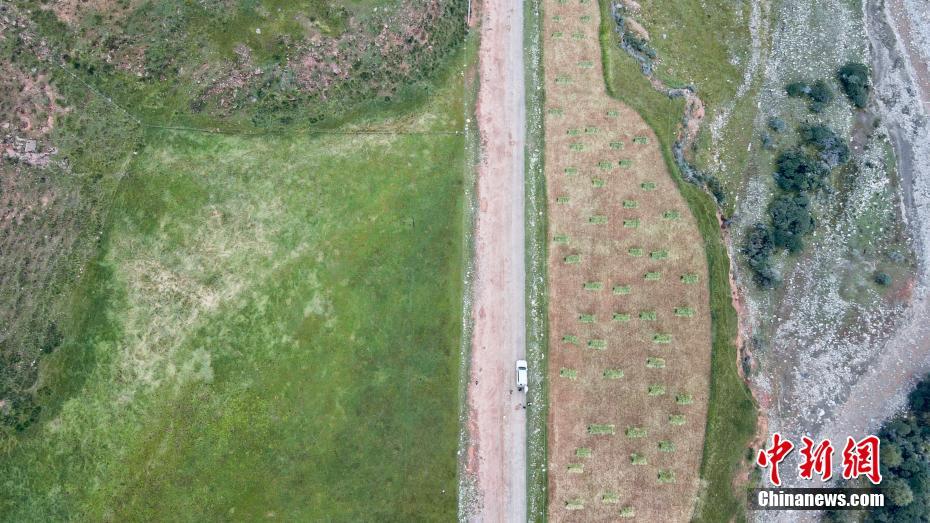 9月9日,航拍祁連山國家公園青海片區油葫蘆自然風景區美景。初秋時節,祁連山國家公園青海片區草地漸黃,天高云淡,勾勒出一幅色彩斑斕的秋日美景圖。中新社記者 李江寧 攝