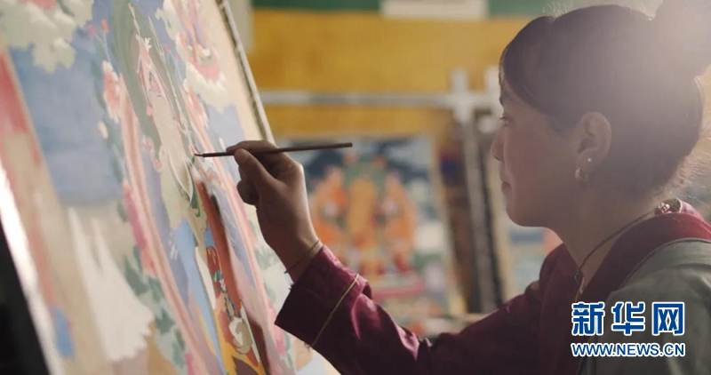 爐霍縣的貧困戶在唐卡實訓基地免費學習唐卡技藝。