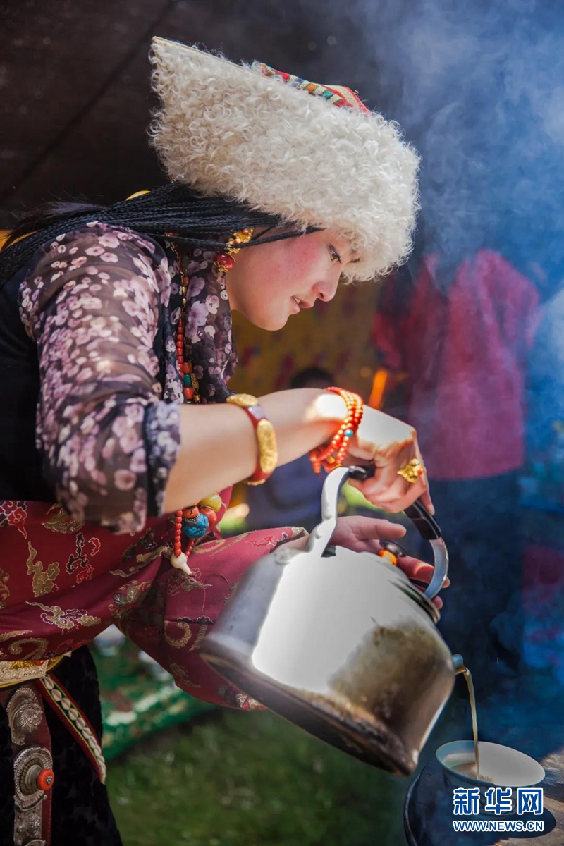 爐霍縣牧民為客人調制酥油茶。游建中 攝