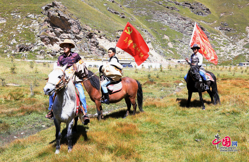 “馬背宣講隊”讓黨的方針政策進入尋常百姓家。攝影:孫磊