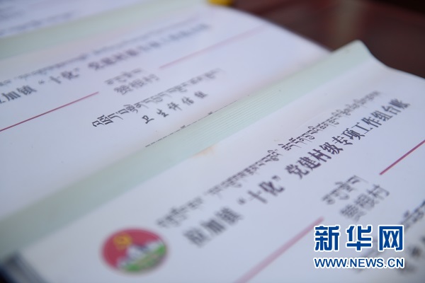 瑪沁縣拉加鎮贊根村“十化”黨建專項工作組臺帳。新華網 潘彬彬 攝