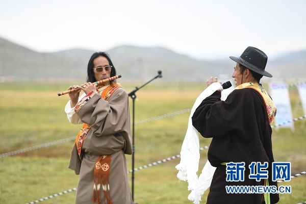 瑪沁縣大武鄉格多村的文藝隊表演。新華網 潘彬彬 攝