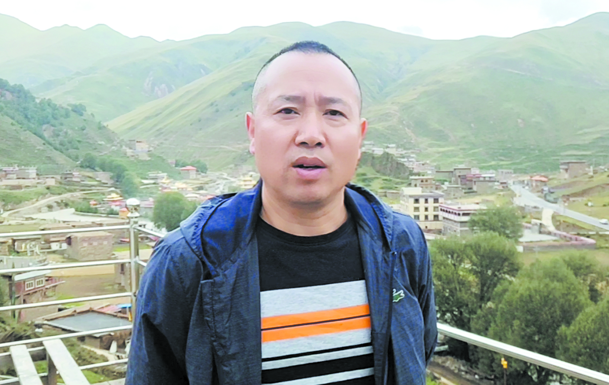 兩岸高山峽谷,色曲河蜿蜒奔流。沿著河邊的公路,記者前往額日措的家鄉——旭日鄉旭日村探訪。行駛一個小時后,視線變得開闊起來,河谷的平壩地帶赫然出現了一排排大棚。在這里,記者見到了溫江區對口支援干部、旭日村第一書記汪小龍。