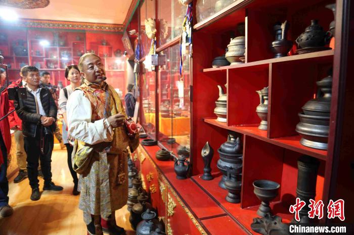 圖為青海省玉樹藏族自治州囊謙縣的國家級“非遺”傳承人白瑪群加介紹藏族黑陶手藝。張添福 攝