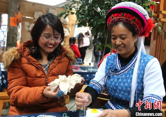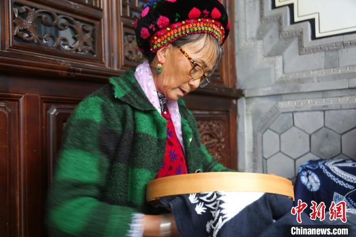圖為云南省大理州白族老人展示手工絕活。張添福 攝