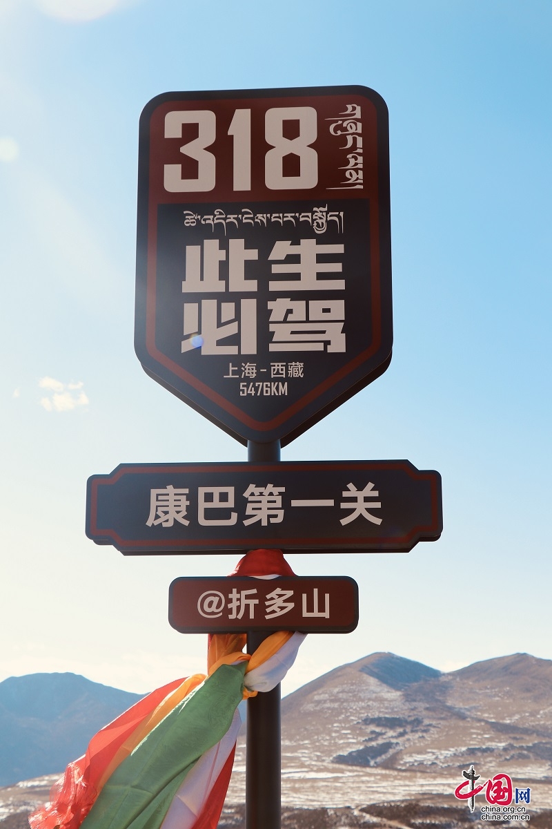11月24日,藏文版“此生必駕318”打卡站牌落地康巴第一關、最美埡口——康定折多山。