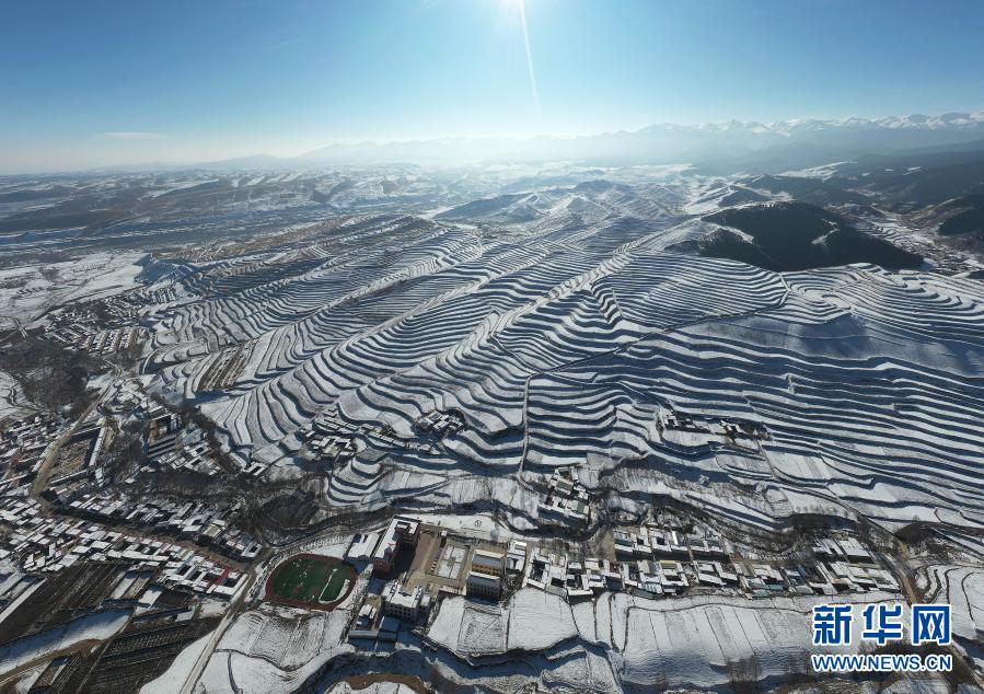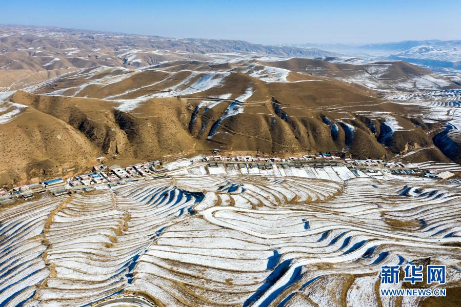 12月7日拍攝的甘肅天祝藏族自治縣大紅溝鎮(zhèn)的梯田雪景(無(wú)人機(jī)照片)。新華社 姜愛(ài)平 攝