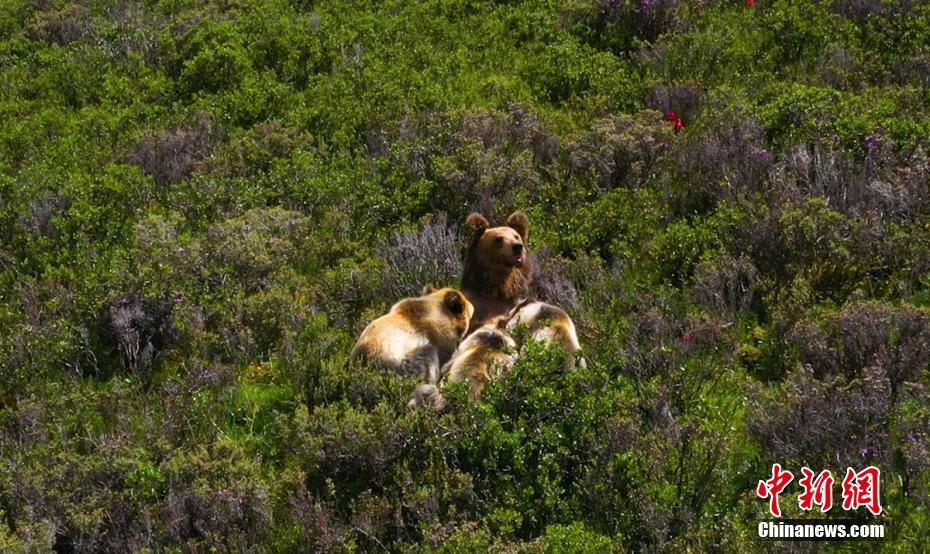 在四川省甘孜藏族自治州石渠縣蒙宜鎮(zhèn)蒙格村附近一處水草豐茂的山坡處拍攝時(shí),偶然發(fā)現(xiàn)一只棕熊媽媽曬著陽光浴給三只小熊喂奶場(chǎng)景,棕熊媽媽喂奶結(jié)束后領(lǐng)著小熊寶寶們緩慢走向大山深處。[詳細(xì)] -