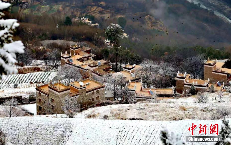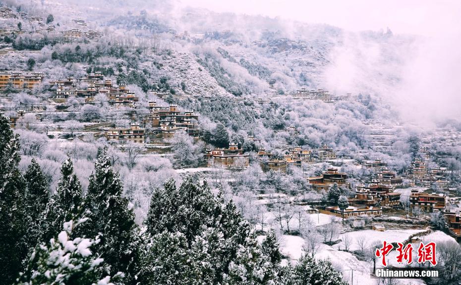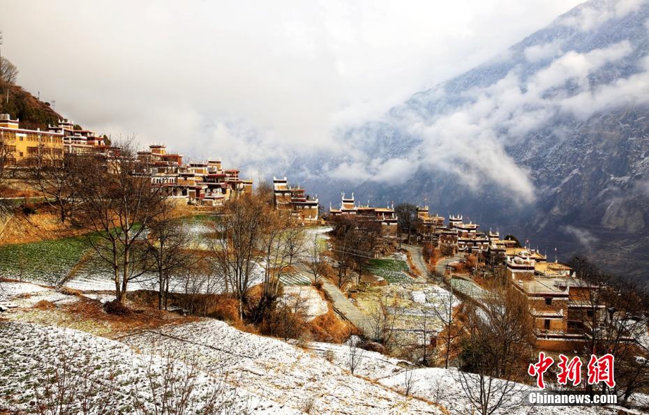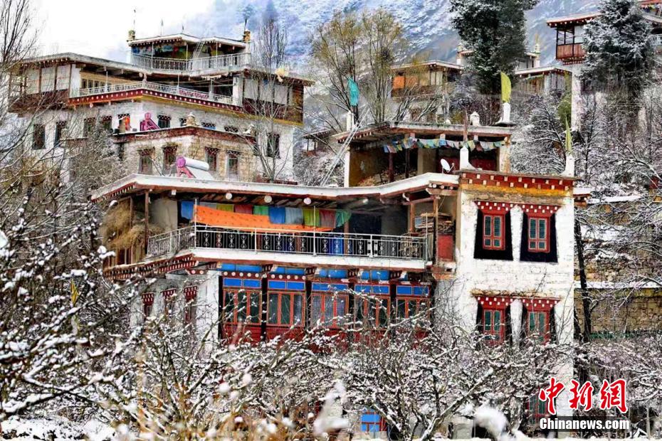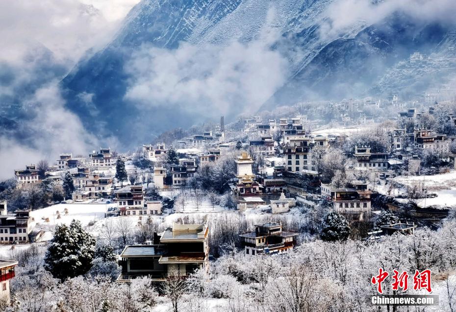 圖為雪后的丹巴甲居藏寨。降初澤郎 攝