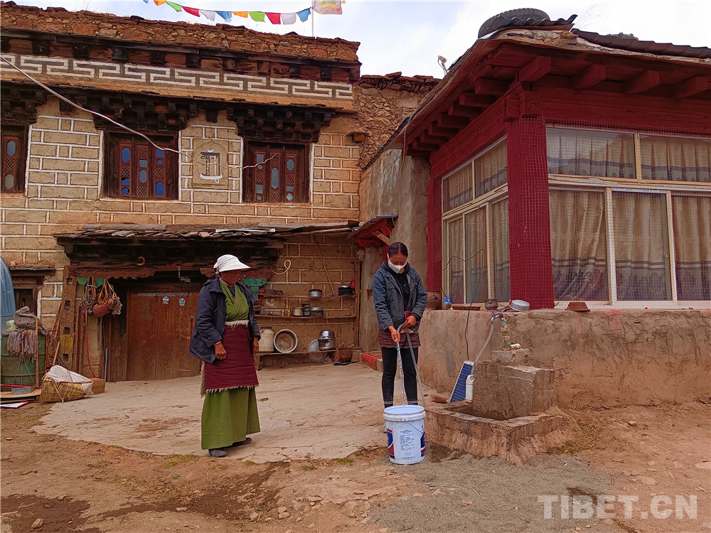 中國西藏網(wǎng)訊 3月21日,四川省甘孜藏族自治州理塘縣麥洼鄉(xiāng)埃地村村民澤仁志瑪吃完中午飯,又忙著打開藏房邊的水龍頭,接水把家里衛(wèi)生收拾一下。