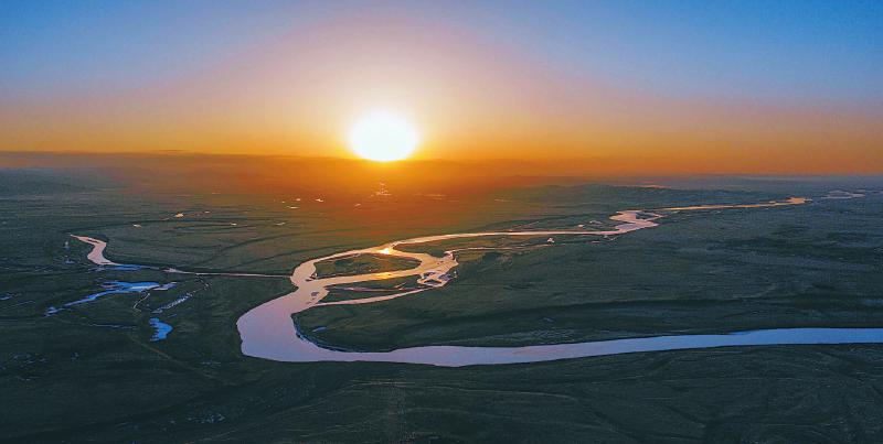 3月9日,若爾蓋縣唐克鎮九曲黃河第一灣的日出。尹鋼 攝