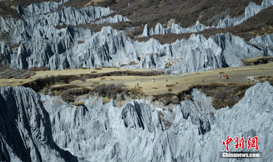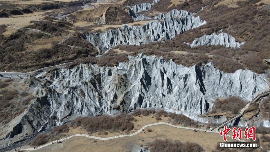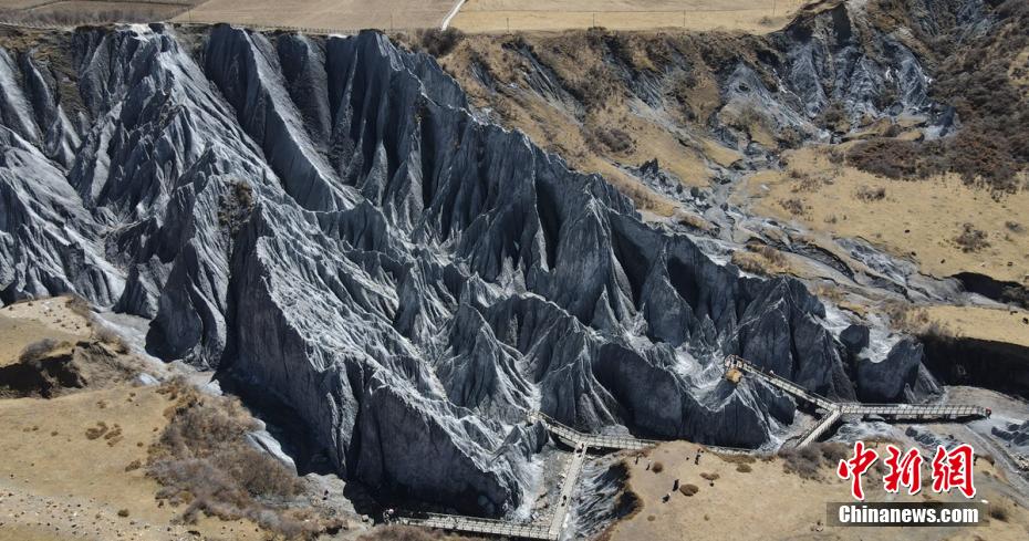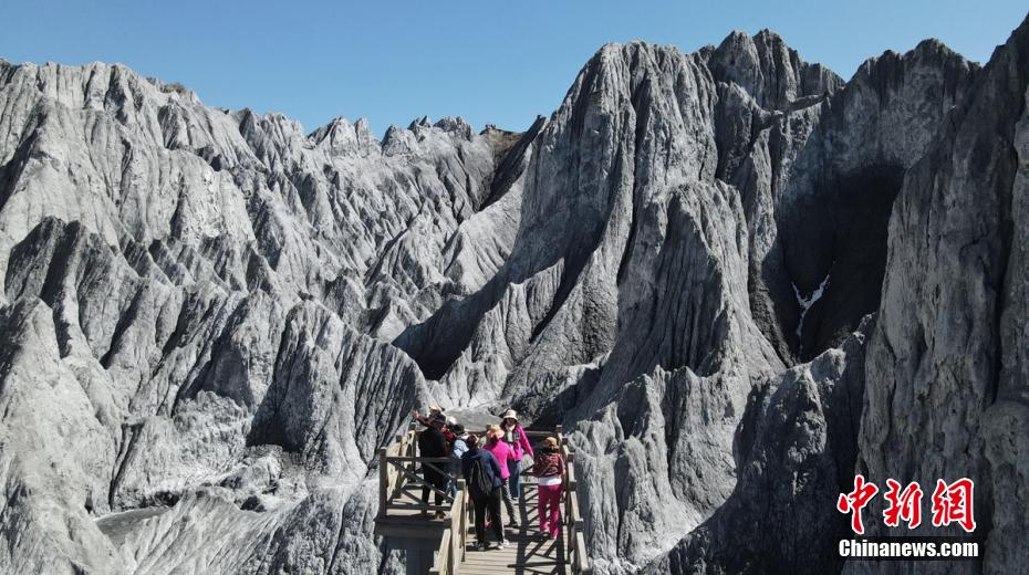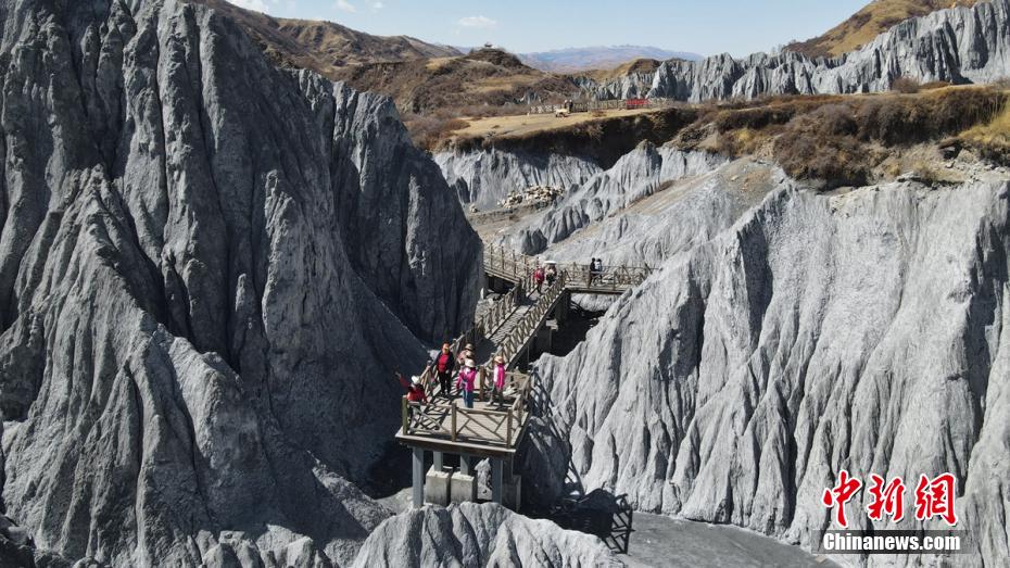 3月24日,四川省甘孜藏族自治州道孚縣八美鎮墨石公園吸引了不少游人前往打卡拍照。海拔約3400米的墨石公園總面積約5平方公里,埋藏于地下的巖土經雨水長年沖刷、風化等,自然形成了千姿百態的獨特地質景觀。因“八美土石林”含鈣鹽,受空氣濕度影響,干燥季節呈淺灰、淺藍灰色,濕潤季節呈蒼墨色。劉忠俊 攝