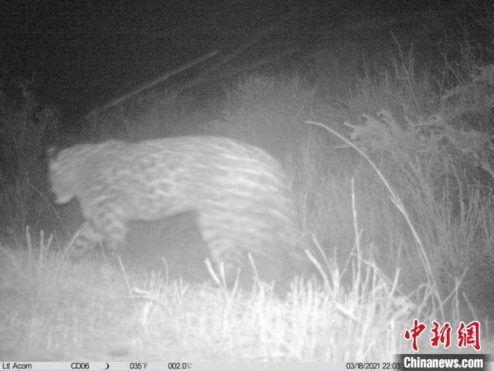 記者26日從青海省玉樹州稱多縣公安局森林警察大隊獲悉,23日,稱多縣公安局森林警察大隊紅外監控系統再次監測到國家一級保護動物金錢豹的活動畫面。這是繼2020年3月監測到金錢豹后,稱多縣境域內第二次監測到該動物的畫面,也是畫面最完整的一次。