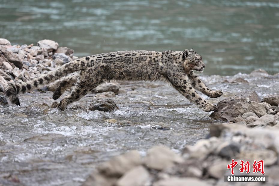 圖為渡河雪豹展現(xiàn)靈動身姿。張蓉芝 攝
