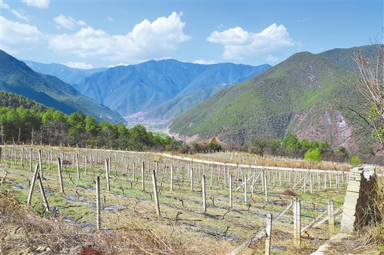 在德欽縣云嶺鄉斯農村,從房前屋后直到高山腳下,整齊的葡萄架綿延成片,種植面積已達1035畝。從2012年起,香格里拉酒業和梅里酒莊等企業和該村達成長期合作,小葡萄成了184戶村民的“致富果”。