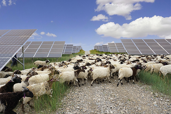 雜草越長越好,既遮擋光伏板工作,在冬季還有火災隱患。周邊村民受邀進園區(qū)放羊, 為鋤草助力。再加上清洗光伏組件、割草、做保安,村民們拓寬了收入渠道,得以脫貧致富。這種牧光互補的模式,實現(xiàn)了經(jīng)濟、環(huán)境效益雙贏,也豐富了清潔能源產業(yè)的內涵。