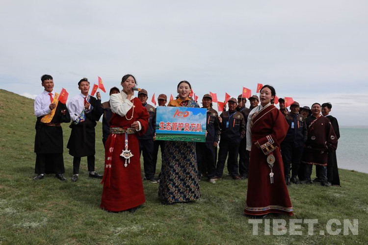 圖為扎陵湖畔青海牧民生態管護員方隊在歌唱 攝影:才仁當智