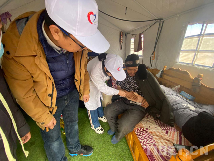 兩天來,瑪多余震不斷、陰晴不定,醫生們克服各種不適,兵分幾路,分別在縣醫院、噶旦村瑪查理安置點、扎陵湖鄉安置點、黃河鄉唐格瑪村醫療點進行義診和帶教查房。除此之外,由6名專家組成的醫療小組還走進7戶當地居民家中,帶著藥品和食用油、棉被等生活用品,給病患之家送去溫暖。