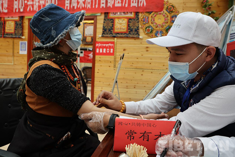 作為“同心·共鑄中國(guó)心”2021青海果洛行大型公益主題活動(dòng)的一名成員,他跟隨“紅三連”到達(dá)青海省果洛藏族自治州甘德縣,在龍恩寺、青珍鄉(xiāng)等地為當(dāng)?shù)匕傩者M(jìn)行義診。