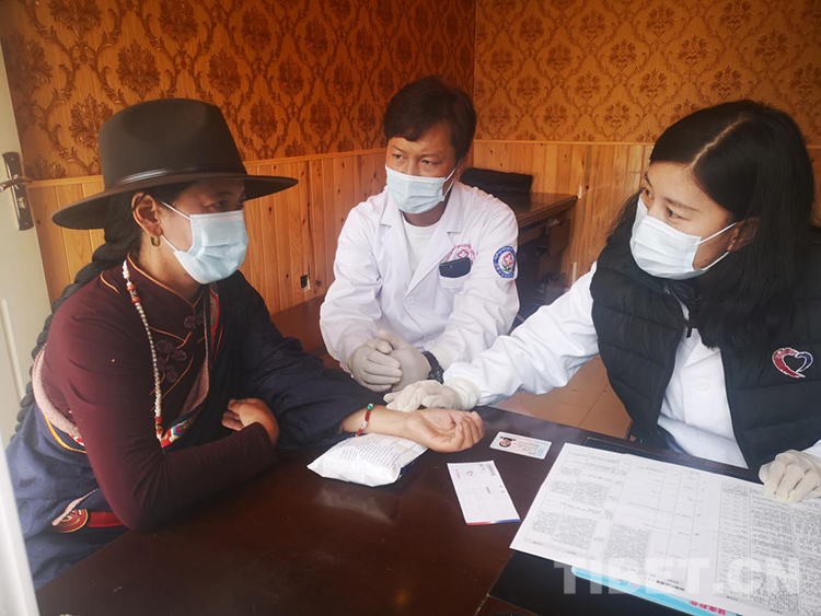 達日縣已連續兩天下雨,氣溫低至4℃。10日清晨,義診小組還沒到,前來求醫的牧民已在排隊等候。小組成員都是第一次到窩賽鄉,得知牧民們有的拄著拐杖、有的走了2小時路過來就醫,成員們身上的寒氣瞬間散去,以飽滿的熱情全身心投入到義診工作中。