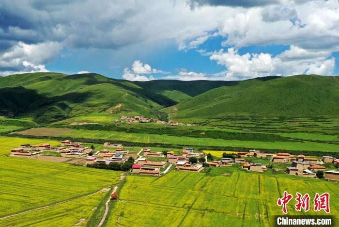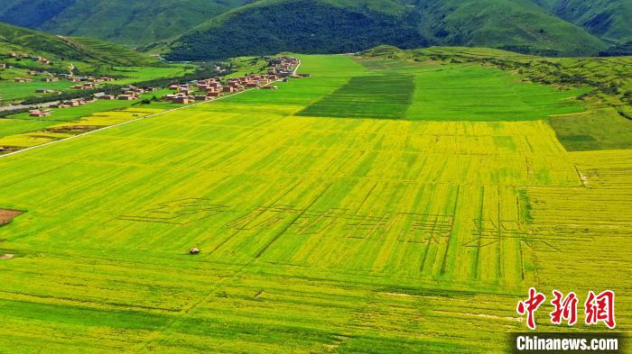 7月21日,四川省阿壩藏族羌族自治州阿壩縣麥昆鄉(xiāng)蠶不扎村高原油菜核心示范基地內(nèi),盛開(kāi)的萬(wàn)畝高原油菜花海吸引游客前來(lái)觀光打卡。