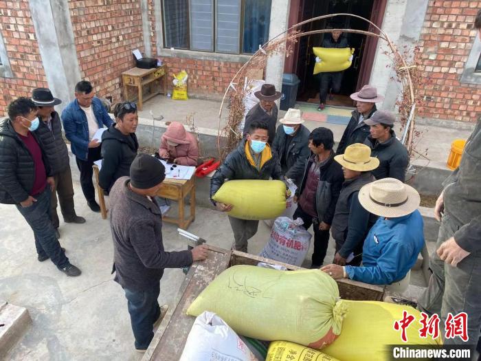圖為給牧戶們發放種子。受訪者供圖