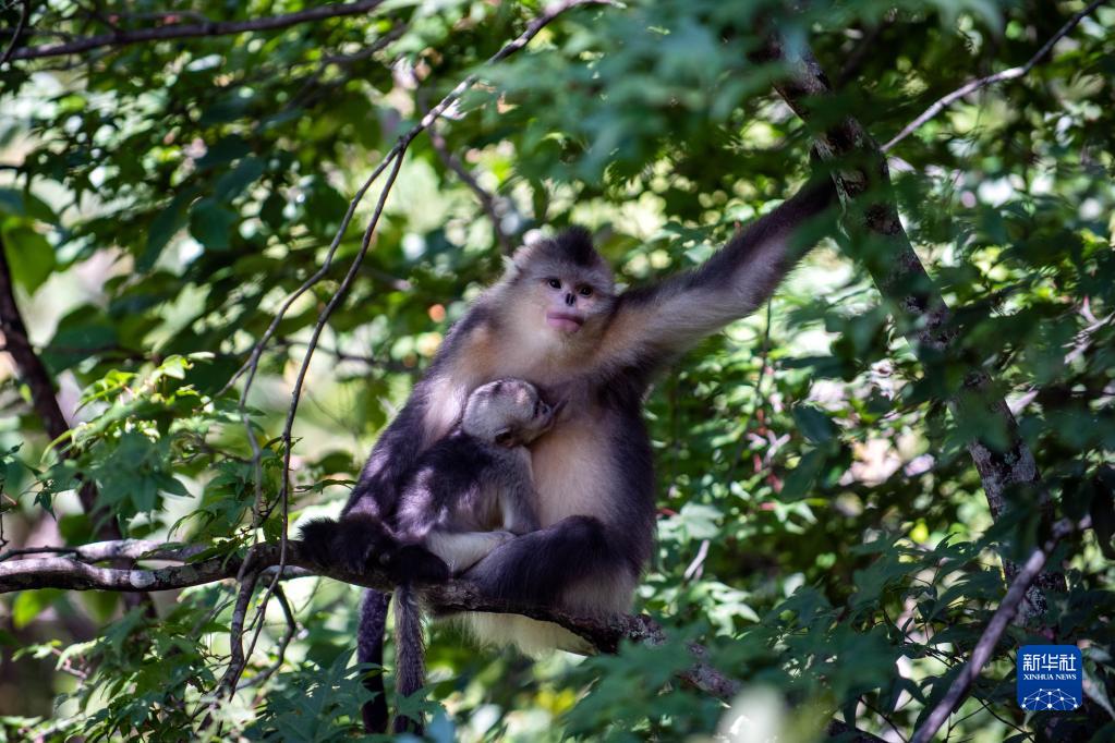云南迪慶藏族自治州香格里拉滇金絲猴國家公園里的滇金絲猴(7月19日攝)。新華社記者 江文耀 攝