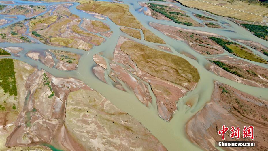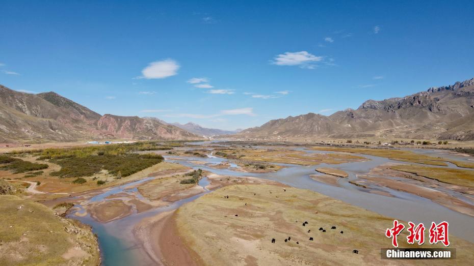 10月18日,航拍秋日的青海玉樹藏族自治州囊謙縣瀾滄江網狀水系,縱橫交錯的水系,與周圍秋季泛黃的草原相襯,勾勒出了一幅絢麗畫卷。中新社記者 李江寧 攝