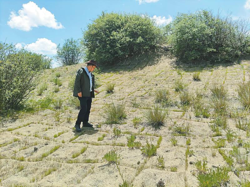 鄢武先察看沙障情況。圖片均由受訪者提供