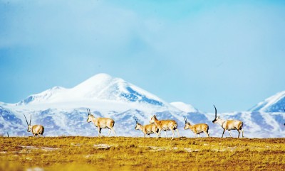 三江源國家公園內的藏羚羊群。趙新錄 攝/光明圖片
