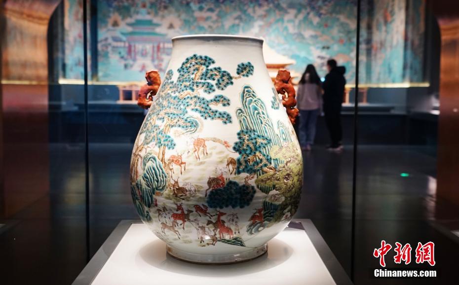 11月29日,位于青海省西寧市的青海省博物館展出粉彩百鹿紋瓷尊。當日,青海省博物館經一年半升級改造后開館并舉辦“1+3”主題展覽,160件藏品首次亮相。該展覽以青海歷史文物為主,青海非物質文化遺產、考古成果、百年革命文物為輔,多角度展現地域歷史及民族文化。據了解,升級后的博物館上展文物1331件(套)/2405件,其中一級文物191件,珍貴文物248件(套),上展文物體量為青藏高原最大。 中新社記者 馬銘言 攝