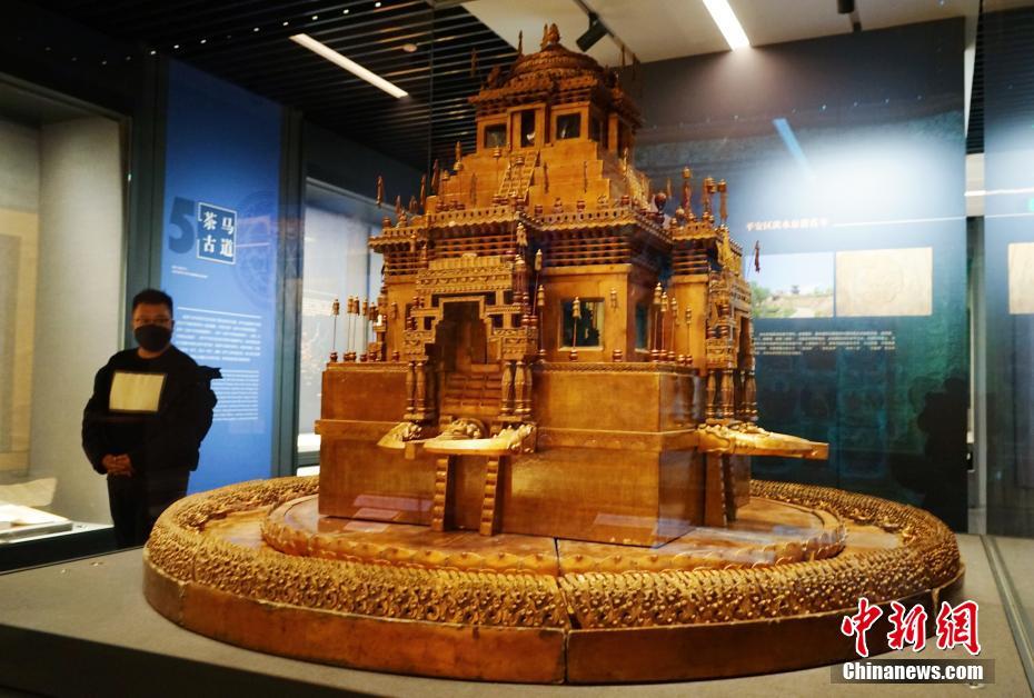 11月29日,位于青海省西寧市的青海省博物館展出木雕壇城。當日,青海省博物館經一年半升級改造后開館并舉辦“1+3”主題展覽,160件藏品首次亮相。該展覽以青海歷史文物為主,青海非物質文化遺產、考古成果、百年革命文物為輔,多角度展現地域歷史及民族文化。據了解,升級后的博物館上展文物1331件(套)/2405件,其中一級文物191件,珍貴文物248件(套),上展文物體量為青藏高原最大。 中新社記者 馬銘言 攝