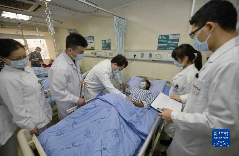 12月3日,在四川大學華西醫院,王文濤(中)在病房內查看包蟲病患者病情。新華社記者 劉坤 攝