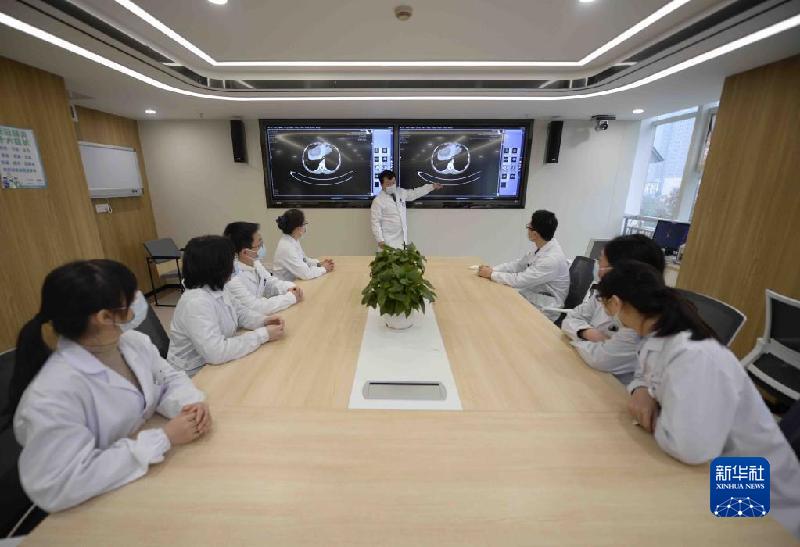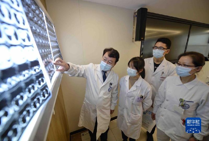 12月3日,在四川大學華西醫院,王文濤(右四)在與醫務人員討論病人治療方案。新華社記者 劉坤 攝