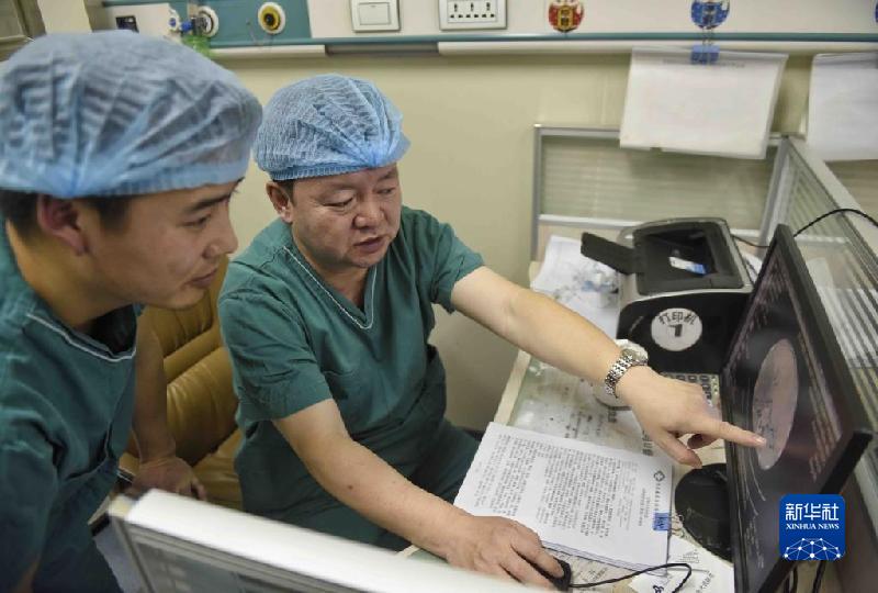 2020年1月16日,在甘孜州人民醫院,王文濤(右)指導當地醫務人員。新華社記者 劉坤 攝