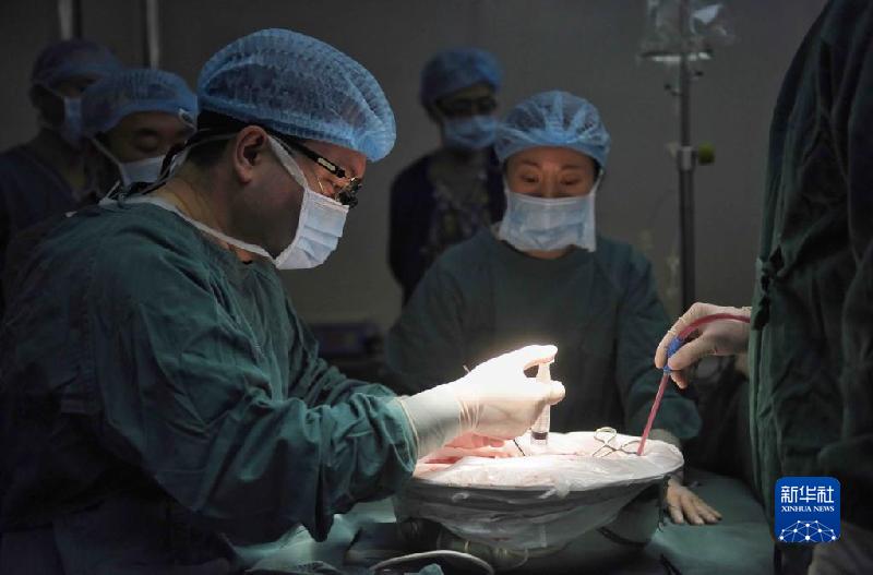 2020年1月16日,在甘孜州人民醫院,王文濤(左)進行“體外肝切除聯合自體肝移植手術”。新華社記者 劉坤 攝